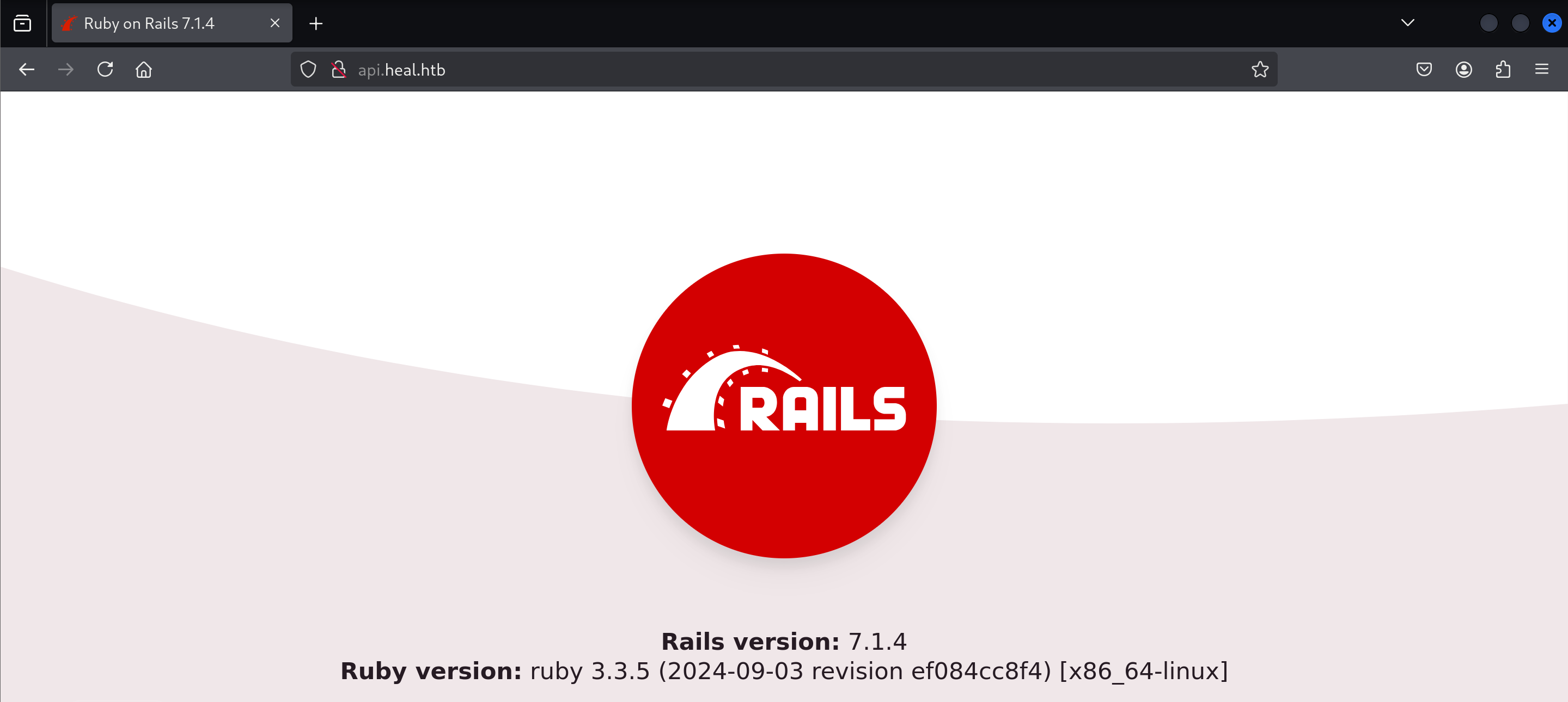 Navigating to the vhost shows that Ruby on Rails is in use. I took note of this and moved on.