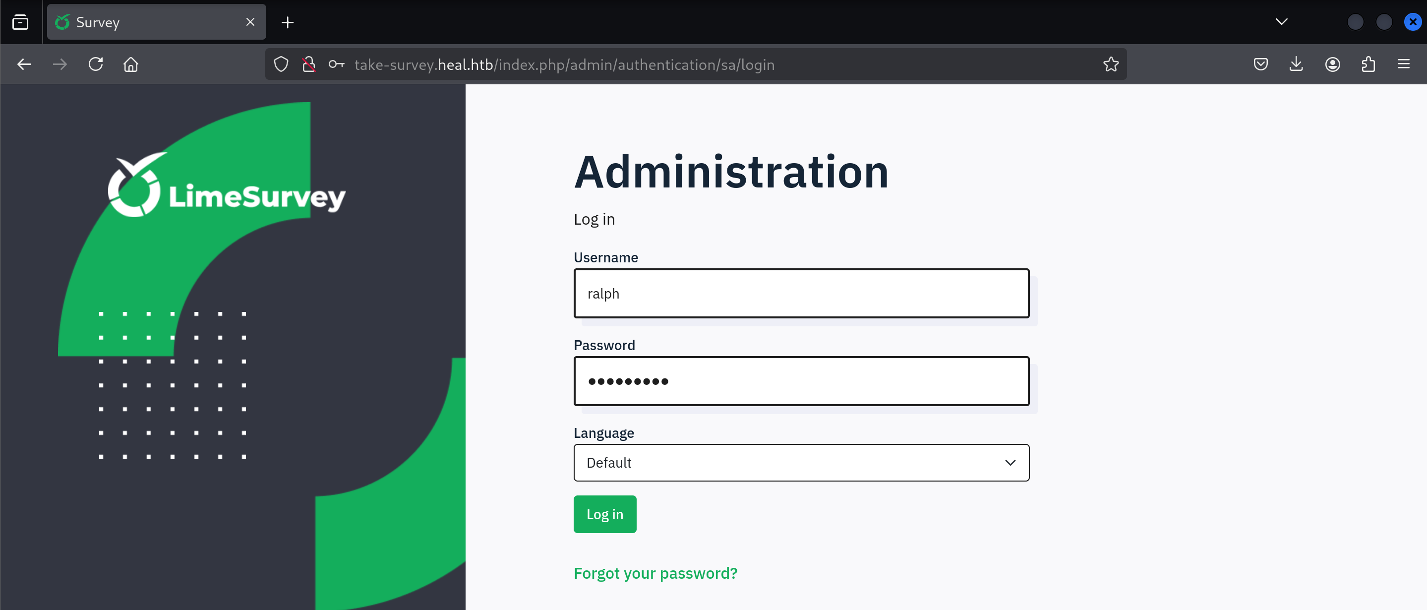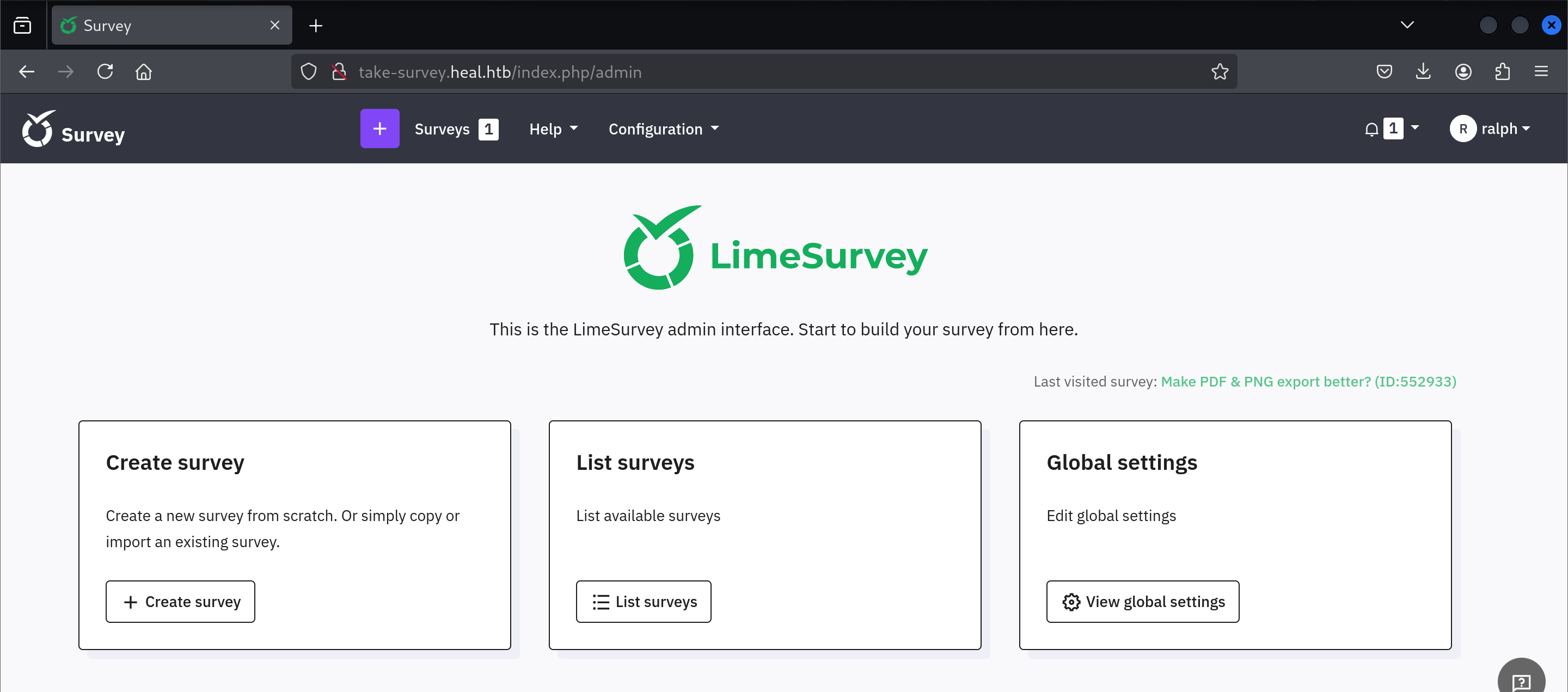└─$ python3 exploit.py http://take-survey.heal.htb ralph 147258369 80